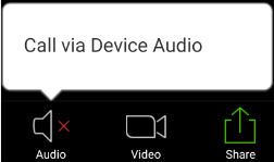 Android: To activate your audio, you will need to click 'Call via Device Audio' when the option appears (as shown below).