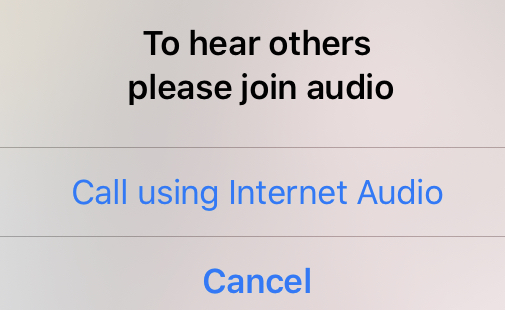 iPhone/iPad: To activate your audio, you will need to click 'Call using Internet Audio' when the option appears (as shown below).