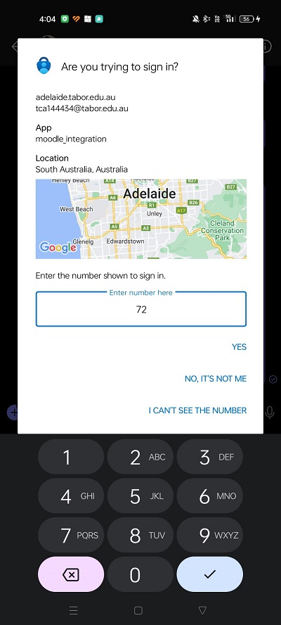 In future, a notification will be sent to your Microsoft Authenticator app on your phone to authenticate your Tabor Online logins.